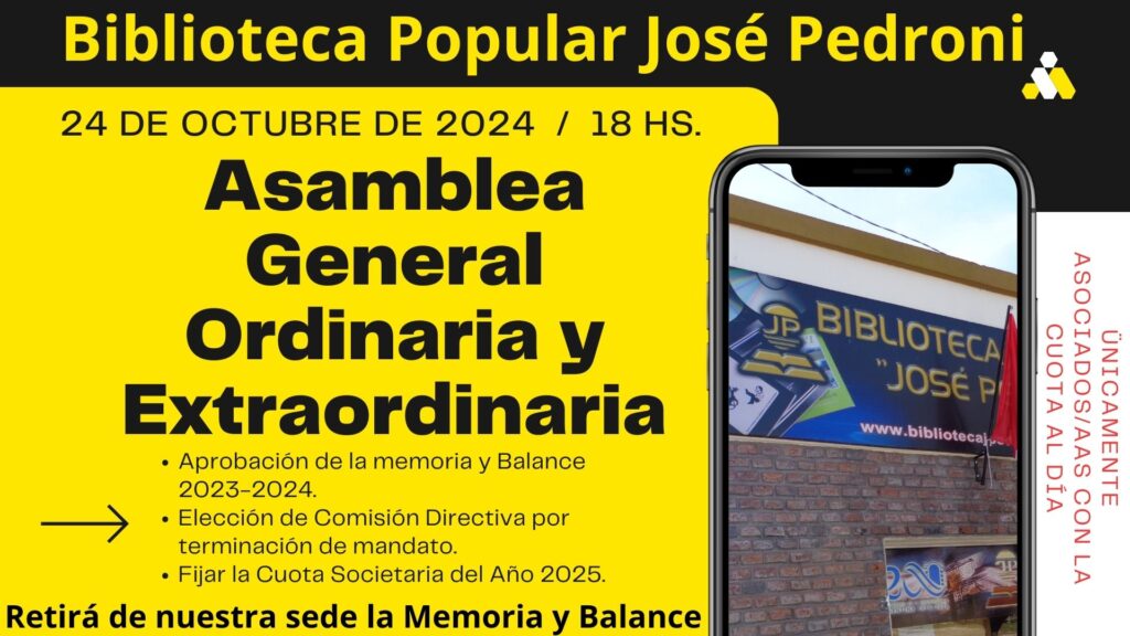 La Biblioteca José Pedroni realizó su Asamblea Anual Ordinaria y Extraordinaria, en donde se renovó la Comisión Directiva por terminación de mandato.