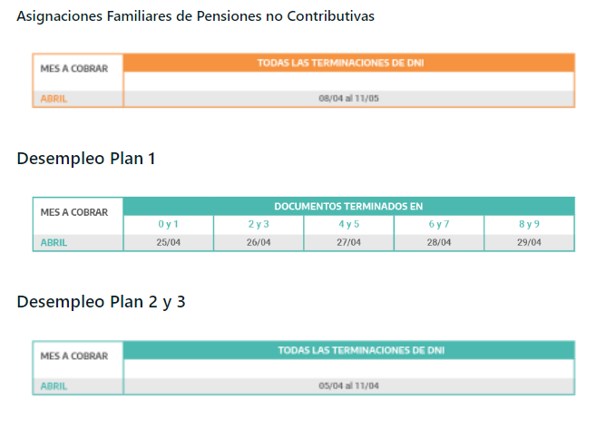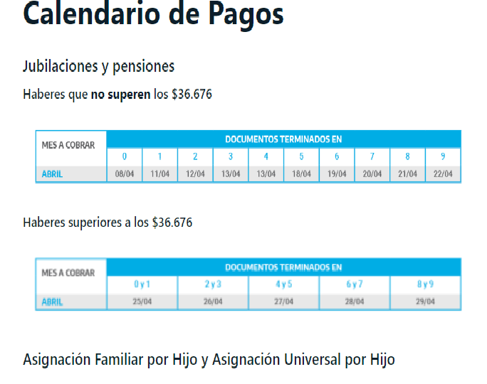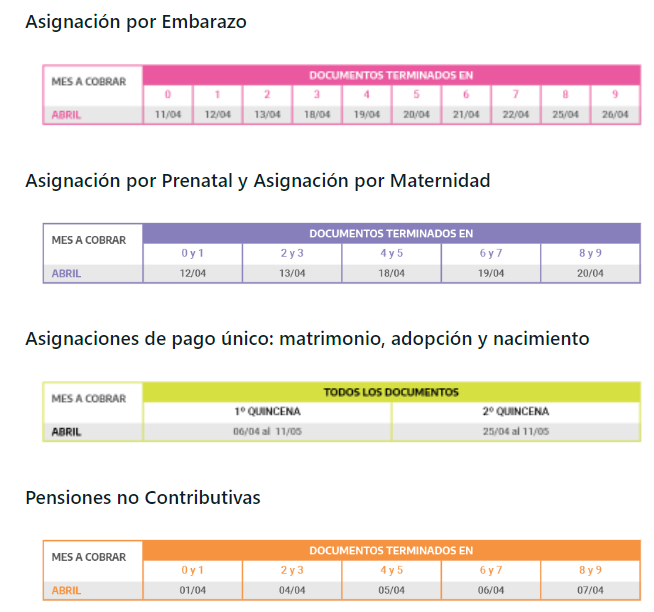 El siguiente es el Calendario completo de Anses para el Mes de Abril.