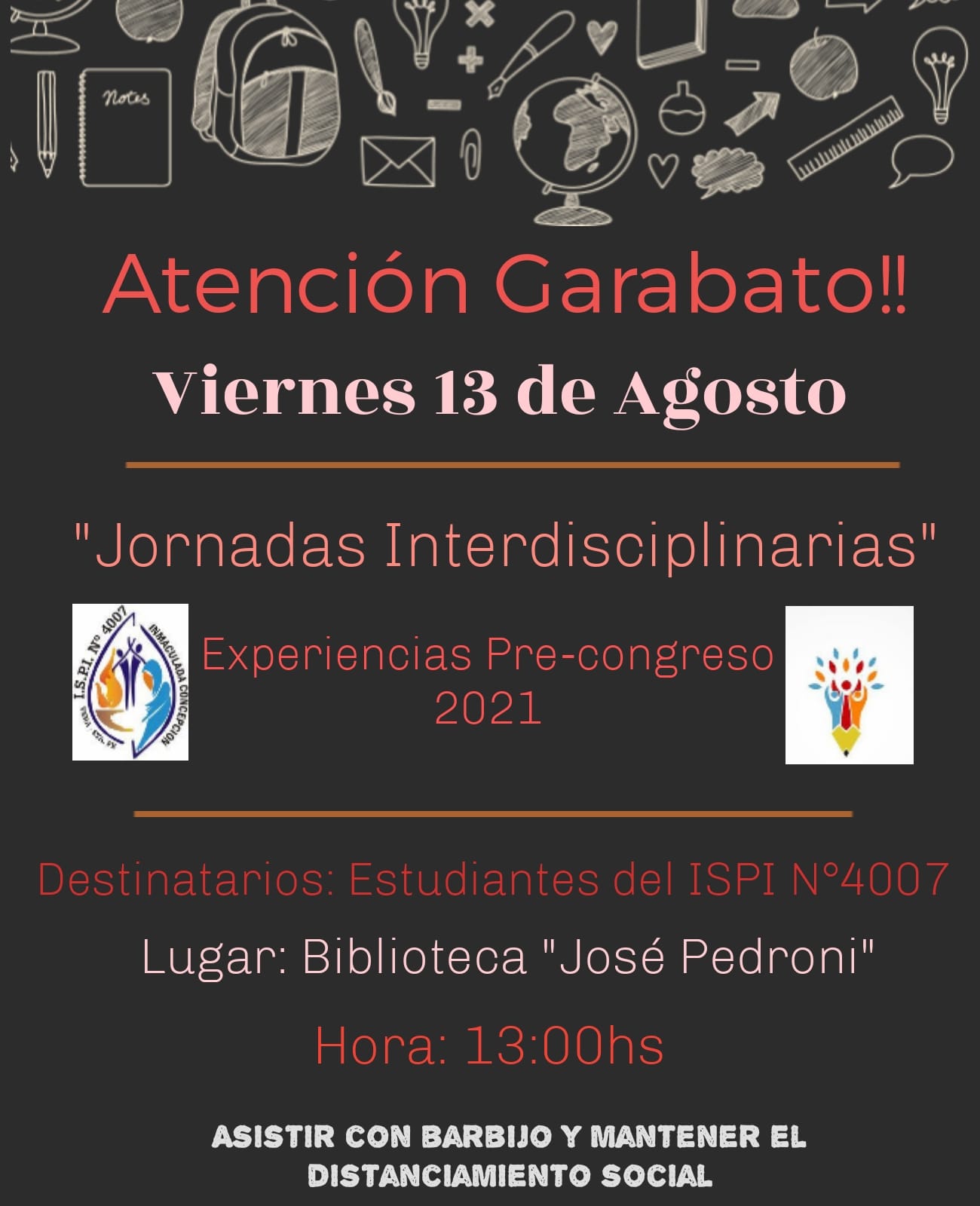 Profesores/as del Instituto Superior del Profesorado N° 4007 de Vera atenderán a sus alumnos el viernes 13 de Agosto, desde las 13 Hs., en el local de la Biblioteca,…